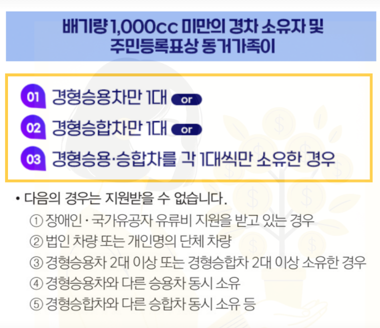 - 또는 경형 승용 1대 + 경형 승합 1대 소유 가능