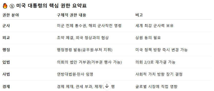 하지만 세계 최강의 군사력 + 경제력 + 동맹 네트워크 + 외교적 지위가 결합되면서 현실적으로는 지구에서 가장 강한 영향력을 가진 지도자가 되는 거죠.