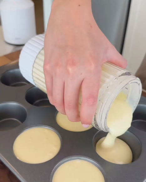 3️⃣ 틀 채우기 및 굽기: 준비된 머핀 틀에 반죽을 3/4 정도만 채워주세요.