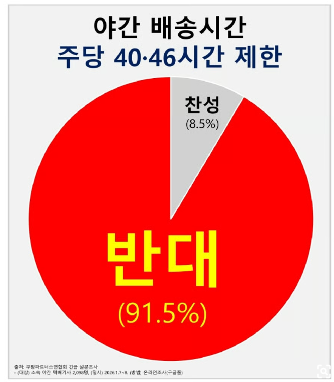 | 작업 시간 | 주 46시간 제한 (야간 기준) | "배송 물량 소화 위해 시간 더 필요" |