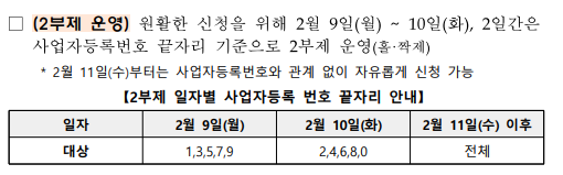 처음 이틀간은 신청자가 몰릴 수 있어서 '사업자등록번호 끝자리 2부제'를 실시한다는 점, 잊지 마세요!
