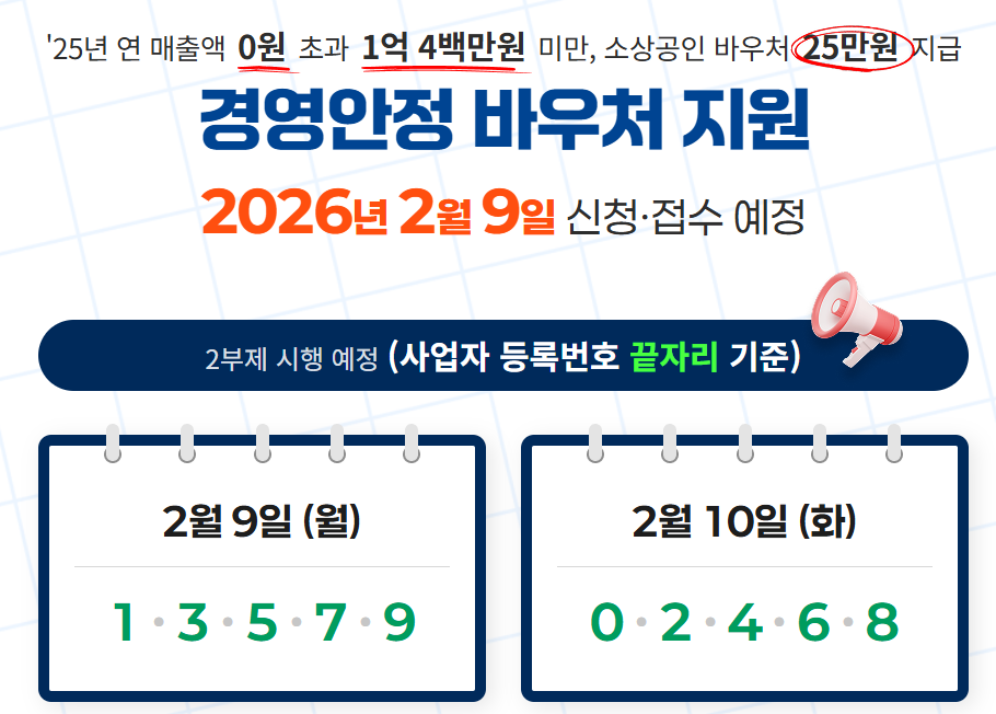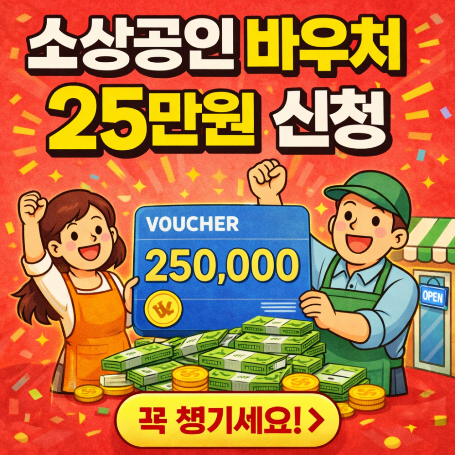 - 대상: 25년 매출 1억 400만원 미만 영업 중인 소상공인 (25만원 바우처 지급)