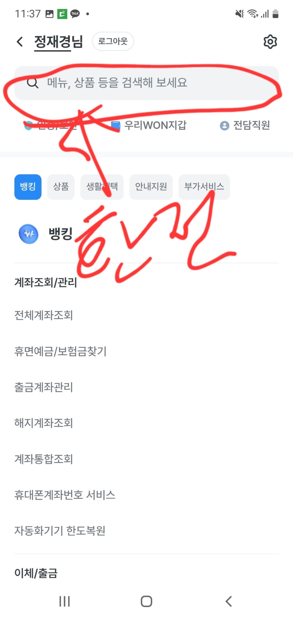 1.우리은행 앱에서 오른쪽 상단 3줄 선택!