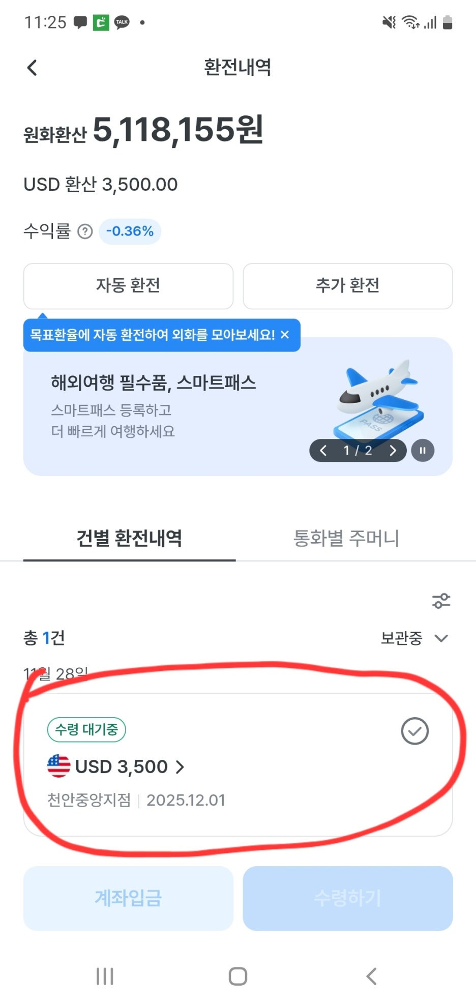 9. 본인 인증을 하고나면 앱 화면에 수령할 지점과 달러금액을 확인할수 있습니다.