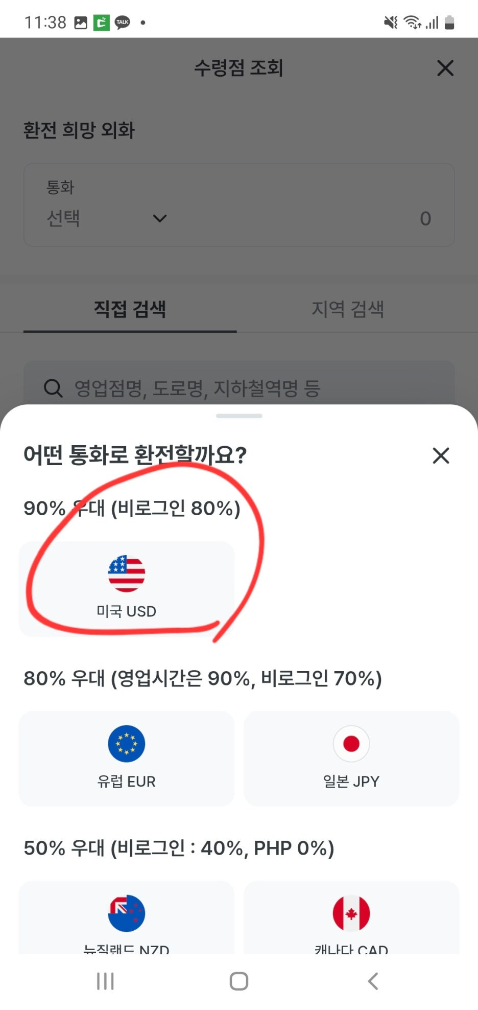 2. 검색란에 '환전'