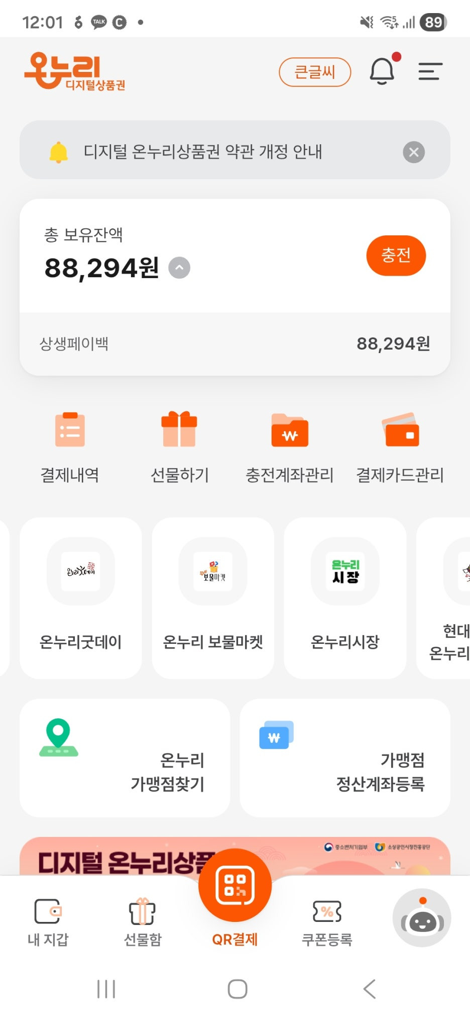 - 결제 방식: 앱에 본인이 사용 중인 카드를 등록해두면, 가맹점에서 평소처럼 카드를 긁을 때 상품권 잔액에서 먼저 차감이 됩니다. QR코드 결제도 가능해요!