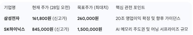 지금 가격에서도 60% 이상 더 오를 수 있다고 본 거예요. SK하이닉스는 목표가가 150만 원까지 나왔으니, 정말 입이 떡 벌어지는 수준이죠?