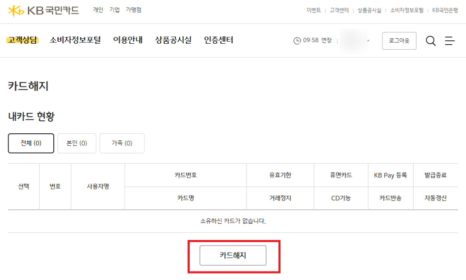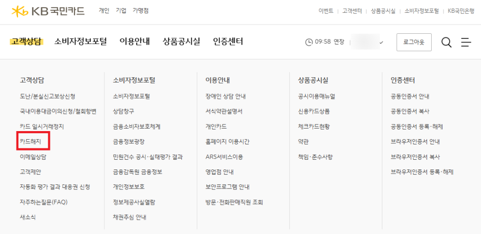 1. 홈페이지에서 카드 해지하는 순서 (PC 기준)