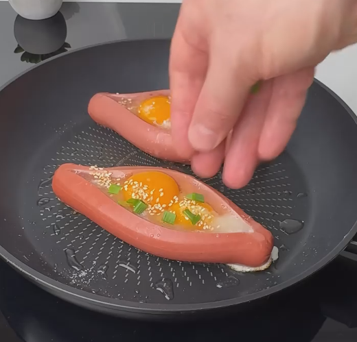 4️⃣ 토핑으로 마무리: 계란이 80% 정도 익었을 때 참깨,