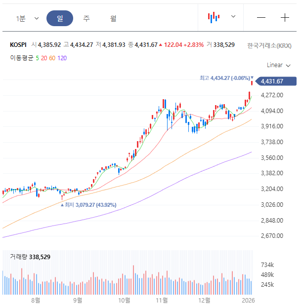 정말 말 그대로 '역대급'이라는 단어 말고는 설명이 안 되는 장이 펼쳐지고 있거든요. 코스피 지수가 드디어 4400선을 뚫어내며 사상 최고치를 새로 썼습니다!