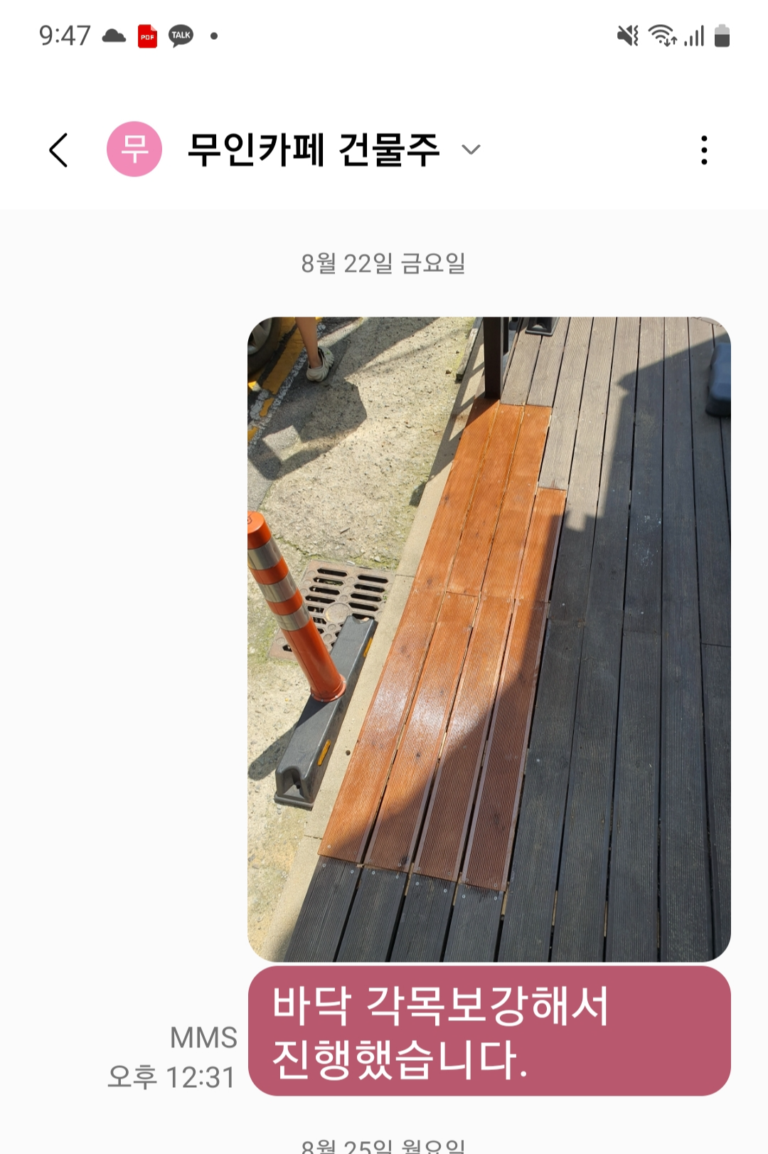 그렇게 수리가 완료되어 건물주에게 진행상태를 알리고 사건은 일단락 되었는줄 알았습니다...