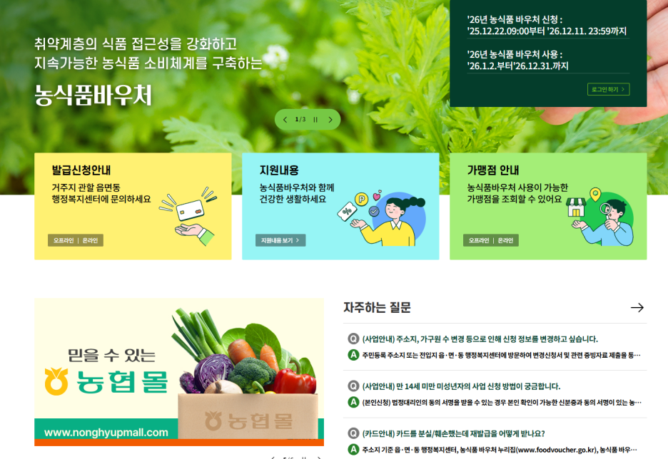 - 사용처: 농협 하나로마트, 지정 온라인몰, 그리고 거동이 힘든 분들을 위한 꾸러미 배달 서비스도 있어요.