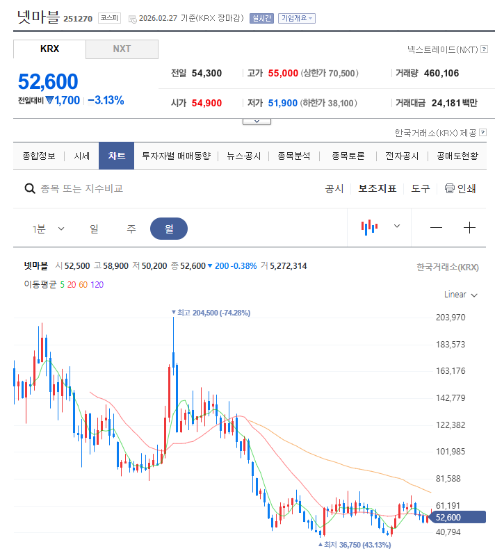 - 상황: 경쟁사 대비 신작 모멘텀이 약하며 지수 상승에서 소외되었습니다.